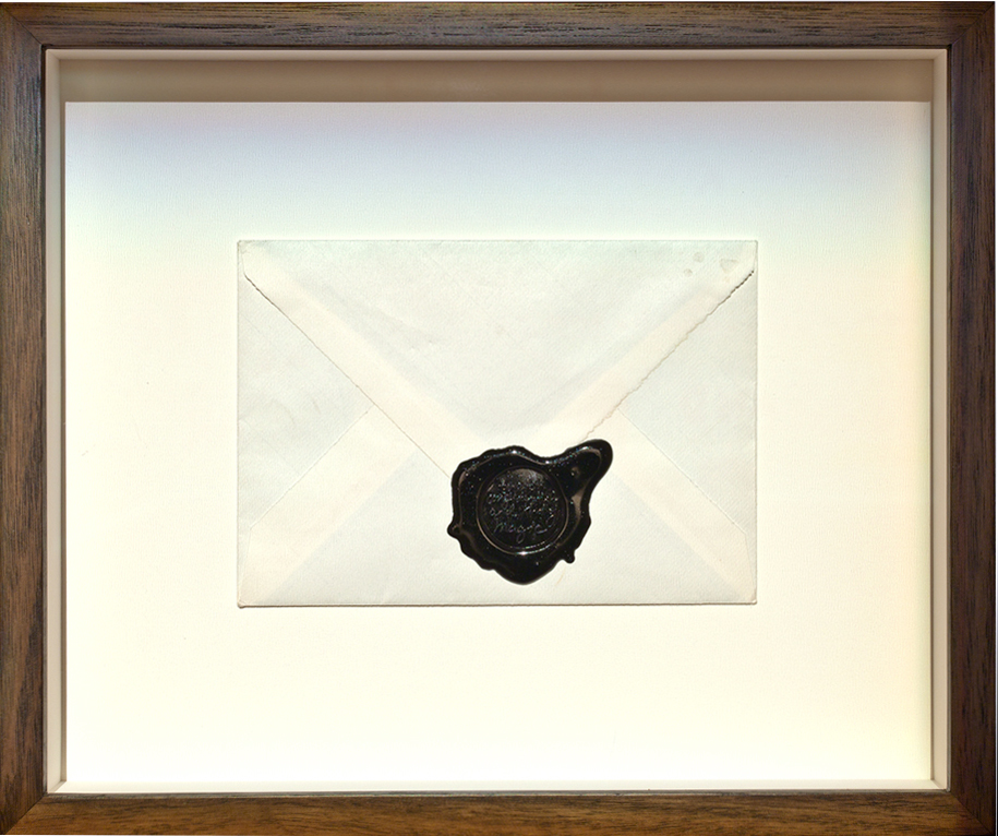 00ArtState1noblack ← Previous Next → Artist Statement, 2010, wax seal in artist’s handwriting on paper envelope with unique message sealed inside, 35 x 29 x 5.5 cm (framed), multiple 1/12 + 2AP