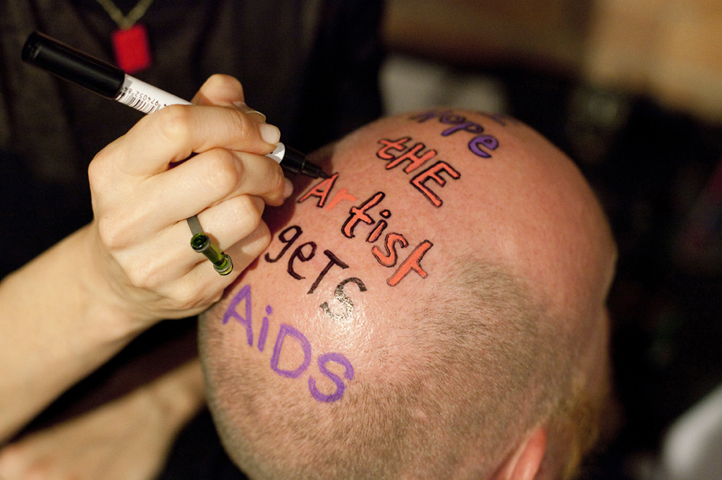 Natascha pen tattoos Ashlee during Agent Provocateur at Anna Pappas Gallery, Melbourne 2012, photo by Kim Liddle