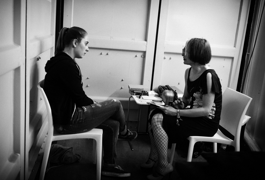 After 12 hours, Stellmach preps for her last consultation of the day, Berlin Festival, photo by Boris Eldagsen