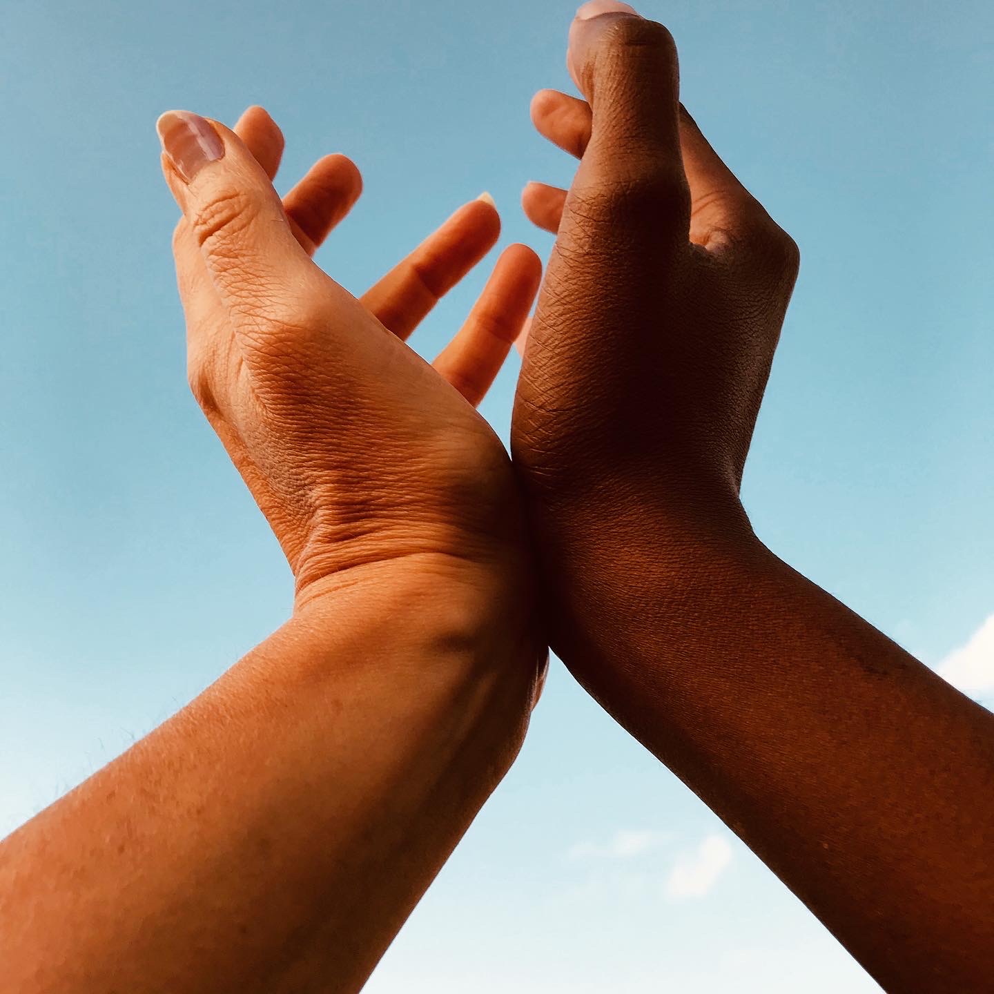 And these are our hands (it was performative and didn’t involve a tripod: I juggled taking the photos with one hand, while the other was in it).