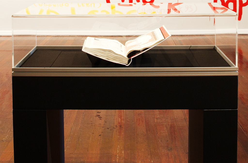 Installation view: Whatever Happened to Painting? (wall text), Media Whore (artist book), Commodity (object), “Rape Me” (artist book), PICA, Australia, 2010, photo by Bewley Shaylor