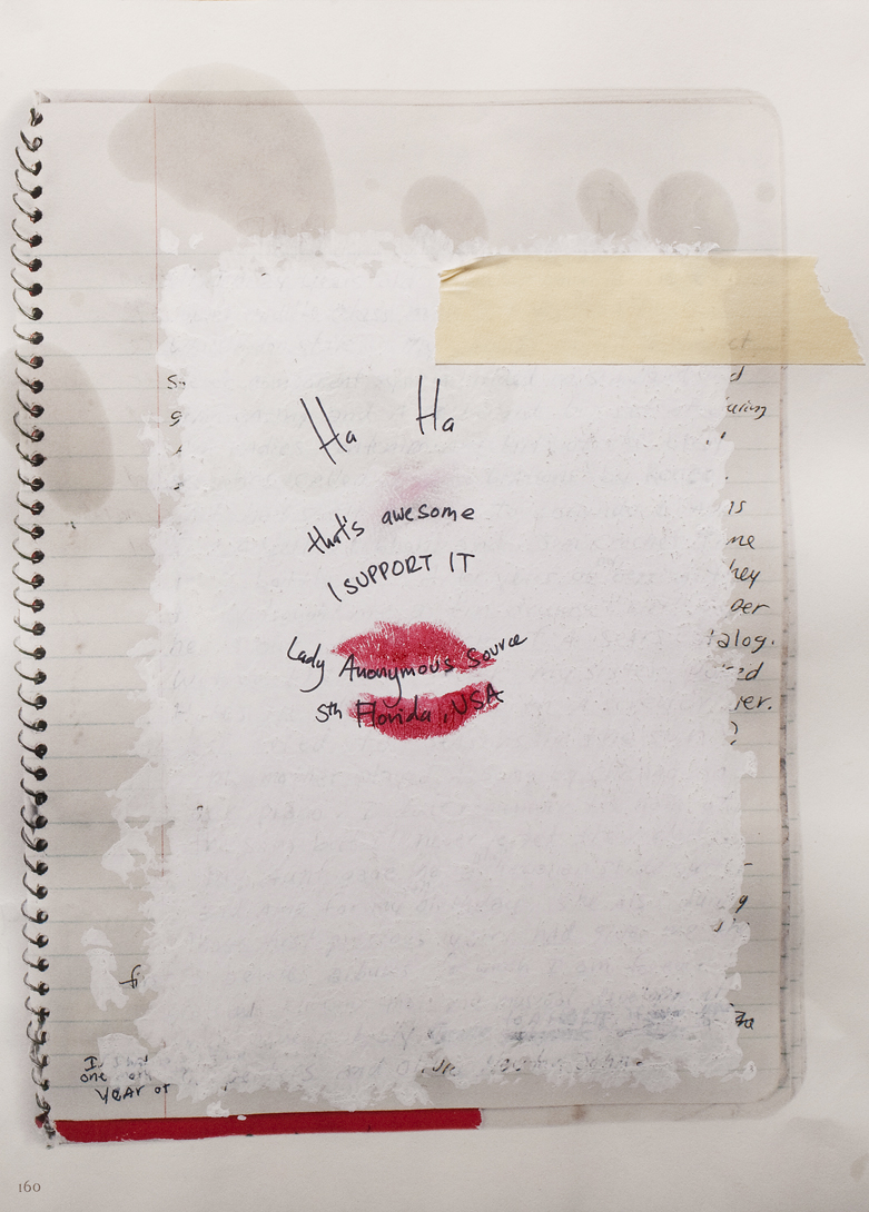 The 1960’s term ‘media whore’ originated during political campaigns and referred to newspapers who covered a candidate relational to their ad buy. Given the public’s derogatory use of the term against Stellmach, the fact that she refused all interviews and the project intentionally generated no income for the artist or gallery – this rich and ironic work questions who indeed the media whores are.