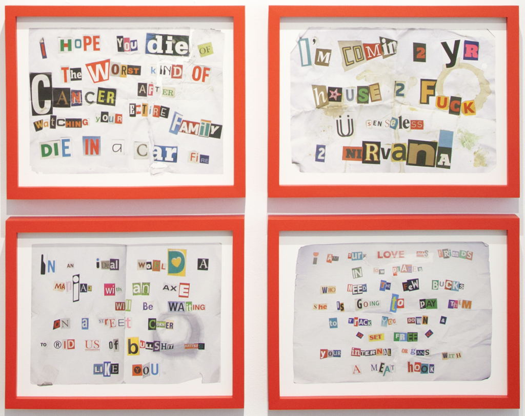 STELLMACHFramedThreats ← Previous Next → Four Framed Threats (sent to the artist), 2010, ink on photo rag, 30 x 40 cm