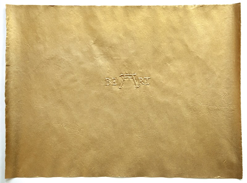 BORIS+NATASCHA, 2021, Oracle from the grave of Albrecht Dürer, Nürnberg, frottage on handmade gold paper, 47 x 66 cm, unique piece